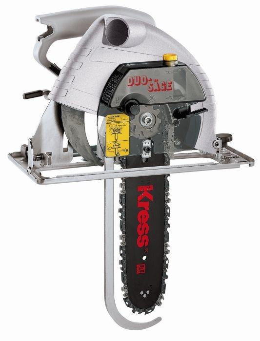 Ручная цепно-циркулярная пила Kress 1400 DS Duo Sage - инструмент мощностью 1400 Вт, сочетающий в себе преимущества и циркулярной и цепной пилы. Насадка цепной пилы используется для косых пропилов высокой точности и выполнения плотницких соединений. Защитный кожух диска, выполненный из алюминия, обеспечивает безопасность оператора во время работы с инструментом. Трех точечное крепление двигателя к основанию пилы - для высокой точности выполняемых работ. Быстрое переоснащение из дисковой в цепную пилу.