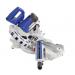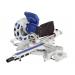 Для дополнительной точности реза предусмотрена лазерная направляющая. В комплекте есть струбцина для фиксации заготовки. Режущая головка с автоматически закрывающимся защитным кожухом. Патрубок для отвода отходов резания позволяет подключить вытяжное устройство.