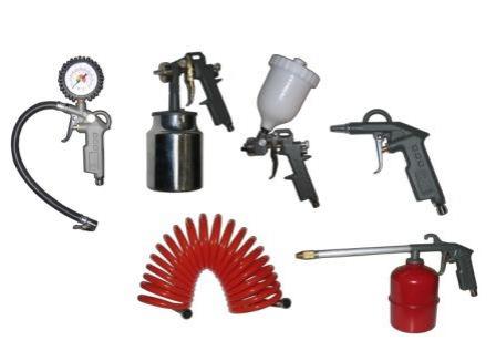 Набор пневмоинструмента НП - 5Н Насадка для распыления красок (с нижним расположением бачка); Насадка для подкачки шин; Насадка для распыления воды; Насадка для работы сжатым воздухом. Воздушный шланг5 м