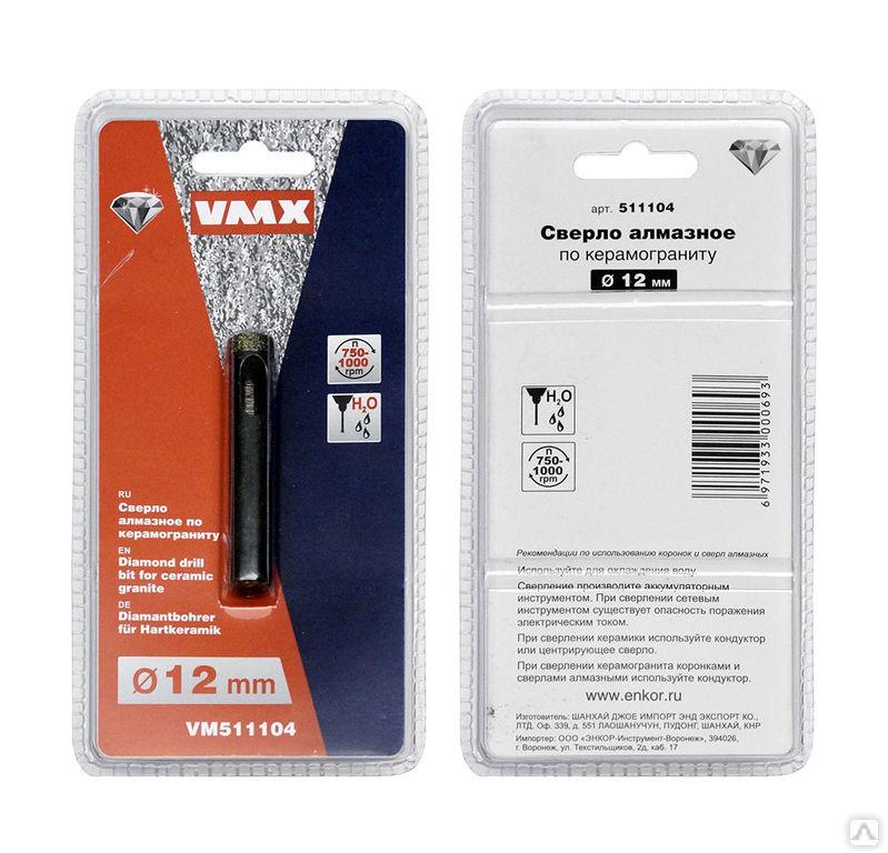 Сверло алмазное VMX 511104 применяется для мокрого сверления керамогранита, керамики и подобных материалов. Оснастка обеспечивает высокую скорость сверления. При изготовлении сверла используется гальванический метод нанесения алмазов. |
