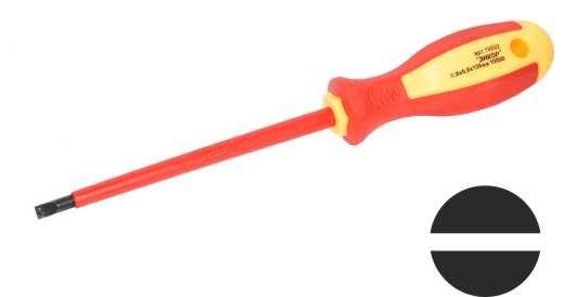 Шлицевая диэлектрическая отвертка 5.5х125мм Энкор 19692 используется для работы с резьбовыми соединениями под напряжением до 1000В. Оснащена стержнем из хромванадиевой стали с диэлектрическими покрытием, которое обеспечивает безопасность. Рукоять из двухкомпонентного материала способствует комфортной работе.