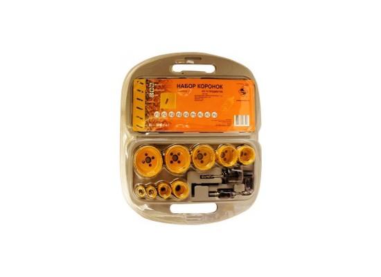 Набор коронок Bi-Metal из 13 предметов: диаметр 19, 22, 29, 35, 38, 44, 51, 57 и 64 мм; два переходных адаптера, ключ на 4 мм и центровочное сверло размером 6.35х105 мм. Адаптеры под патроны 10 и 13 мм. Рекомендуется использовать для сверления чёрных металлов толщиной до 4 мм, цветных металлов, пластиков, древесины и её производных.