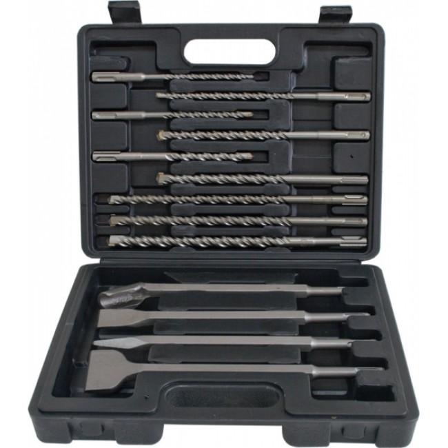 Универсальный набор буров и насадок для перфоратора из 13-и предметов, в удобном пластиковом кейсе. Комплект: Буры:
