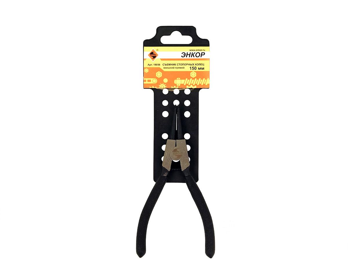 Съемник стопорных колец, внешний прямой 150мм Энкор 19056 оснащается удобными рукоятками, что позволяет эффективно работать при монтаже и демонтаже стопорных колец. Инструмент имеет небольшую длину и изогнутые рукоятки для надежного хвата.