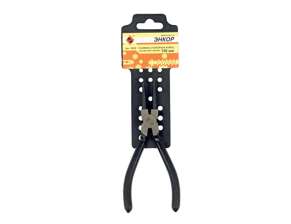 Съемник внутренних стопорных колец, прямой 150мм Энкор 19058 представляет собой простой и эффективный инструмент для автосервиса. При помощи специальной пружины рукоятки возвращаются в исходное положение, что делает работу более качественной. |