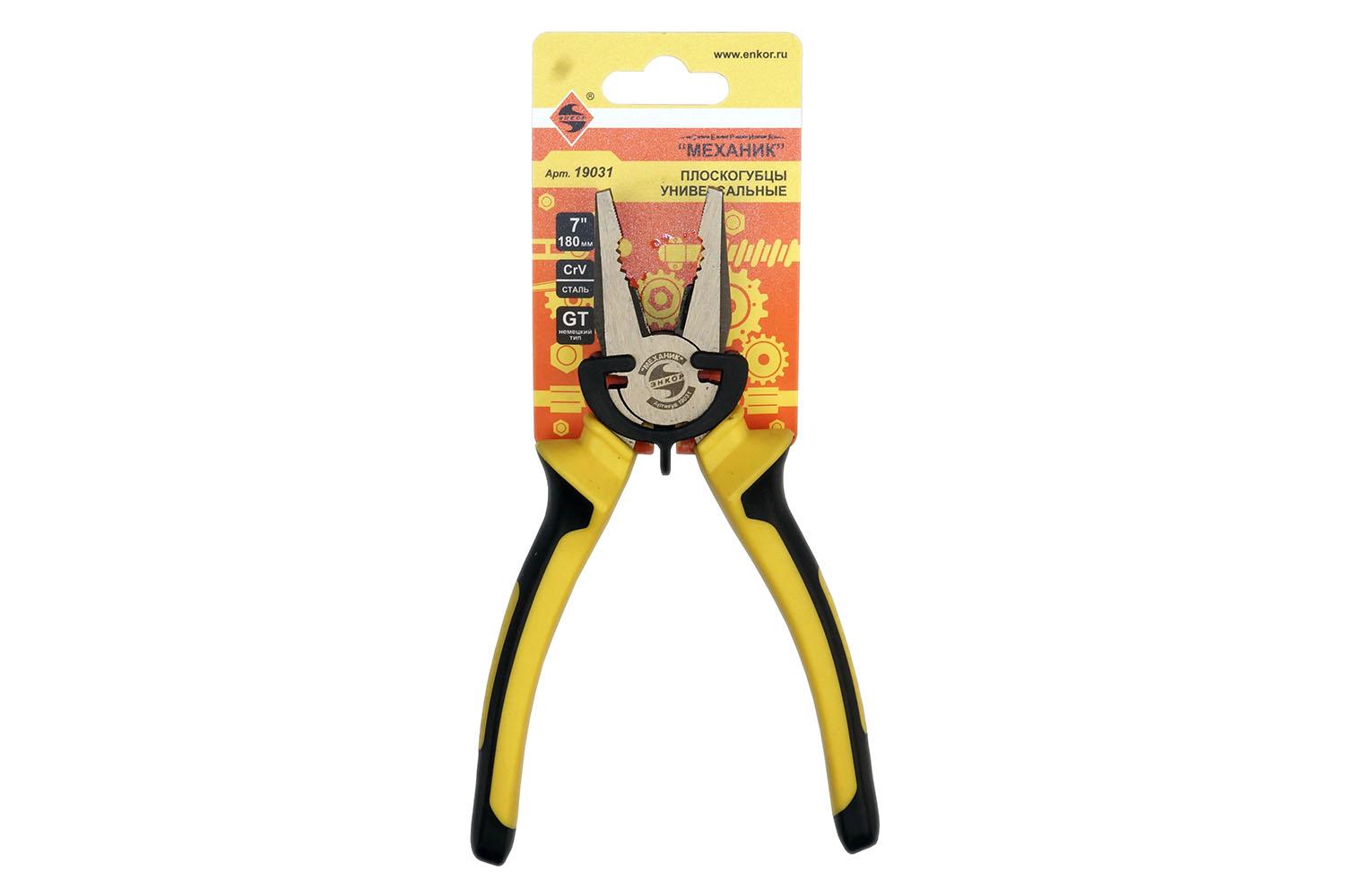 Универсальные плоскогубцы Энкор, 180мм GT 19031 - необходимый инструмент для слесарно-монтажных работ. Прочный инструмент прослужит долгие годы. Ярко-желтые ручки из пластмассы надежно лежат в руке. |