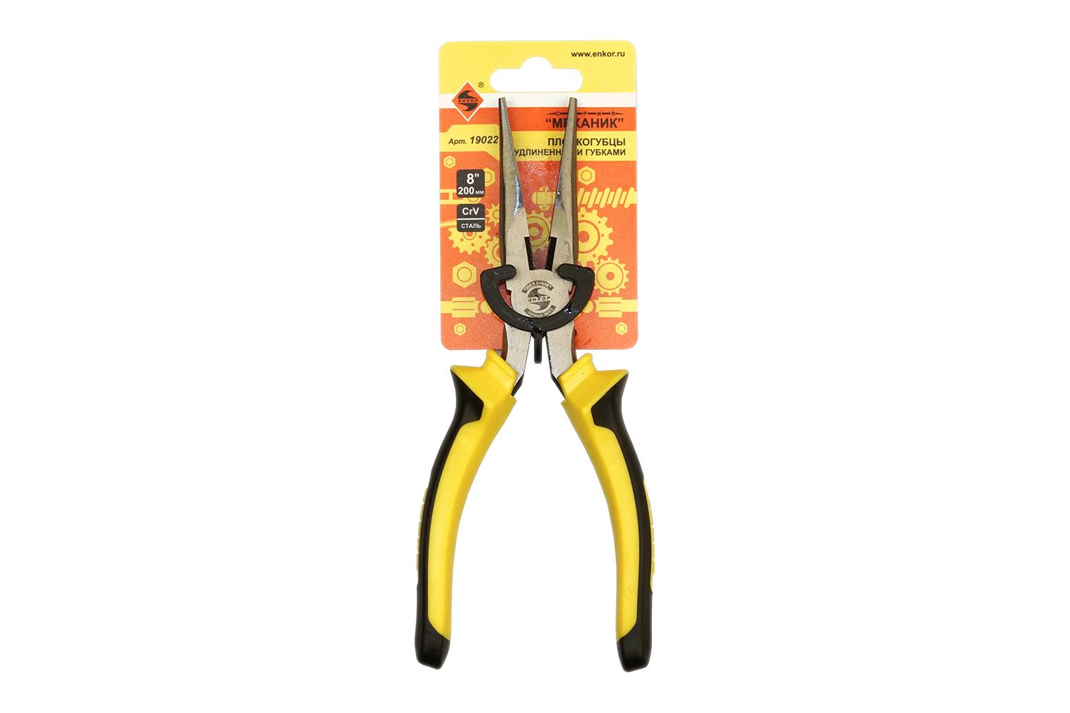 Плоскогубцы с удлиненными губками 200 мм 1/5/50 Энкор 19022 - инструмент, используемый для работы с мелкими деталями. Пластмассовые рукоятки имеют упоры для пальцев, что способствует удобству в использовании инструмента. Удлиненная рабочая часть способствует хорошему захвату. |