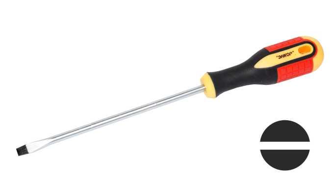 Шлицевая отвертка с трехкомпонентной рукоятью 1.6x8.0х200мм Энкор 19618 применяется для слесарных или авторемонтных работ. Является простым в применении приспособлением, необходимое для монтажа и демонтажа резьбовых соединений. Стержень из хромванадиевой стали оснащен намагниченным наконечником. Трехкомпонентная рукоять обеспечивает комфортную работу. |
