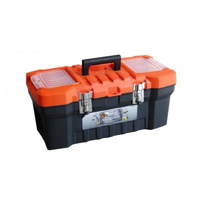 Прочный инструментальный ящик отечественного производства. Два металлических замка, яркая заметная крышка с отсеками для мелочей и крупной надёжной ручкой, которая полностью утапливается в крышку в сложенном состоянии. Также на крышке и корпусе ящика имеются ушки для установки пломбы или навешивания замка. Выступы с торцов ящика достаточно удобны для хвата, благодаря чему ящик удобно брать и удерживать двумя руками (что бывает необходимо, например, при погрузке). Ящики одного размера уверенно штабелируются друг на друга. Внутри ящика есть лоток для мелочёвки.