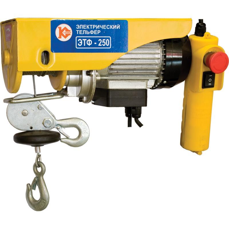 Электротельфер Калибр ЭТФ- 250 А 00000073587 подойдет для подъема или опускания грузов в бытовых условиях. Для поднятия используется многожильный стальной трос. При необходимости изменить грузоподъемность можно при помощи полиспаста. Простое управление обеспечивает пульт ДУ. Работа на расстоянии также безопасна для сотрудника и исключает вероятность получения травмы.