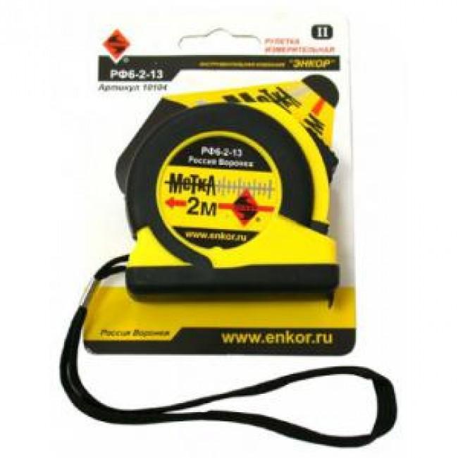 Рулетка Энкор Метка, 2м 10104 - эргономичное приспособление для обмера небольших линейных расстояний до 2-х метров. Корпус рулетки прорезинен, что не позволяет инструменту проскальзывать в руке. Благодаря тому, что крепление ремешка углублено, возможно проведение замеров с упором задней поверхности рулетки. |