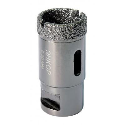 Коронка алмазная Энкор 48307 предназначена для угловых шлифовальных машин. Применяется для сухого сверления гранита, мрамора, бетона, кирпича, керамической плитки и стекла. Сухой рез обеспечивается за счет вакуумного метода спекания алмазных сегментов при изготовлении коронки. Высота алмазного слоя – 10 мм. Тело коронки цельное, что обеспечивает высокую герметичность, которая позволяет работать на высоких оборотах.
