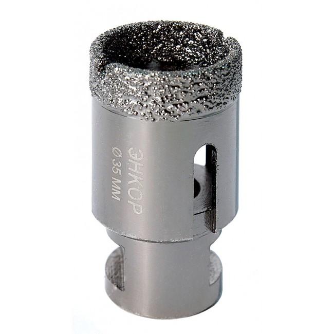 Коронка алмазная Энкор 48308 предназначена для угловых шлифовальных машин. Применяется для сухого сверления гранита, мрамора, бетона, кирпича, керамической плитки и стекла. Сухой рез обеспечивается за счет вакуумного метода спекания алмазных сегментов при изготовлении коронки. Высота алмазного слоя – 10 мм. Тело коронки цельное, что обеспечивает высокую герметичность, которая позволяет работать на высоких оборотах. |