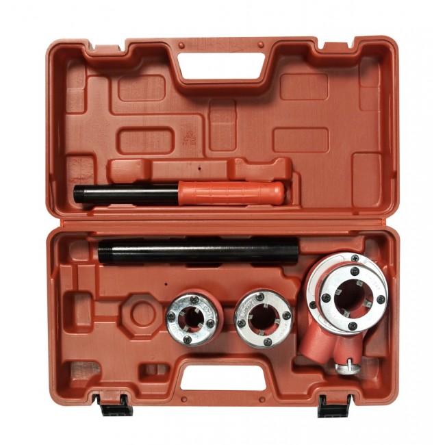 Трубные клуппы “Энкор” предназначены для нарезания наружной резьбы на металлических трубах различного диаметра. Стандарт резьбы BSPT. Резцы клуппов изготовлены из высококачественной инструментальной стали с последующей термообработкой. Твердость резцов не менее 60HRS. Наборы клуппов а адаптером представлены к пластиковом чемодане для удобства транспортировки.