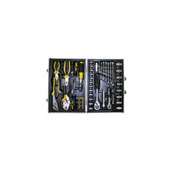 Набор инструментов Энкор, 59 предметов 57055 - качественный, надежный помощник при ремонтных и монтажных работах в быту и различных мастерских. Функциональный набор включает в себя 59 предметов, компактно упакованных в прочный алюминиевый кейс. Материал рабочих частей инструментов - легированная сталь. Эргономичные рукоятки инструментов не скользят в руке.