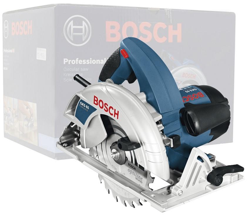Дисковая пила Bosch GKS 65 - инструмент мощностью 1.6 кВт, предназначенный для быстрого и точного распиливания деревянных заготовок толщиной до 65 мм. Возможен распил под углом до 45 градусов. За счет турбовентилятора обеспечивается оптимальный обзор линии разметки и точность выполнения пропила. Блокировка шпинделя обеспечивает безопасную замену диска.