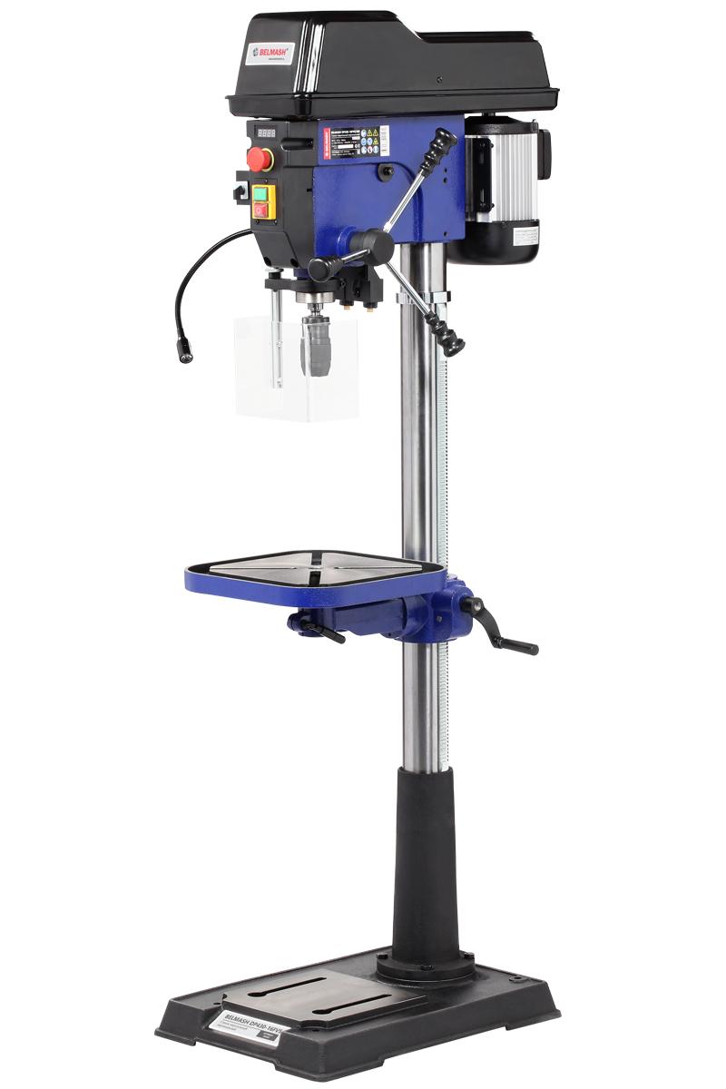 Модель DP430-16FVS одна из самых интересных в линейке по функционалу. Стол, опора и корпус сверлильной головки выполнены из чугуна, что придает станку серьезный вес. Установка напольная. На основании имеется четыре отверстия для дополнительной фиксации станка.