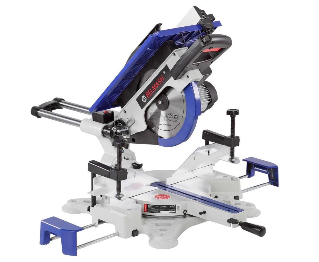Пила имеет мощный асинхронный двигатель - 2000 Вт. Обороты с вала двигателя к режущей головке передаются с помощью ременной передачи. В качестве режущего инструмента рекомендуются пильные диски диаметром 305 мм (просадка 30 мм). Пильный узел имеет горизонтальную протяжку 275 мм, что позволяет резать заготовки шириной до 335 мм. У пильного узла предусмотрена и функция наклона в обе стороны от -45 до 45 градусов.