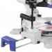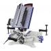 Пила оснащена поворотным основным столом (-50...+60 градусов), его диаметр 336 мм. По бокам находятся два расширения. В раздвинутом состоянии максимальная ширина составляет 1060 мм, минимальная – 660 мм. Стол оборудован упором с двумя регулируемыми вставками и возможностью установки двух струбцин для надежной фиксации заготовки.
