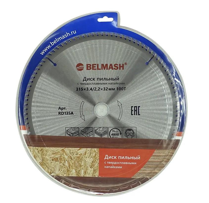 Диск пильный BELMASH 315x3,4/2,2x32/30; 100T с твердосплавными напайками для многофункциональных и циркулярных станков, торцовочных пил и т. п. Предназначен для распиловки ламината, а также древесины, фанеры, МДФ, ДСП, ОСП.
