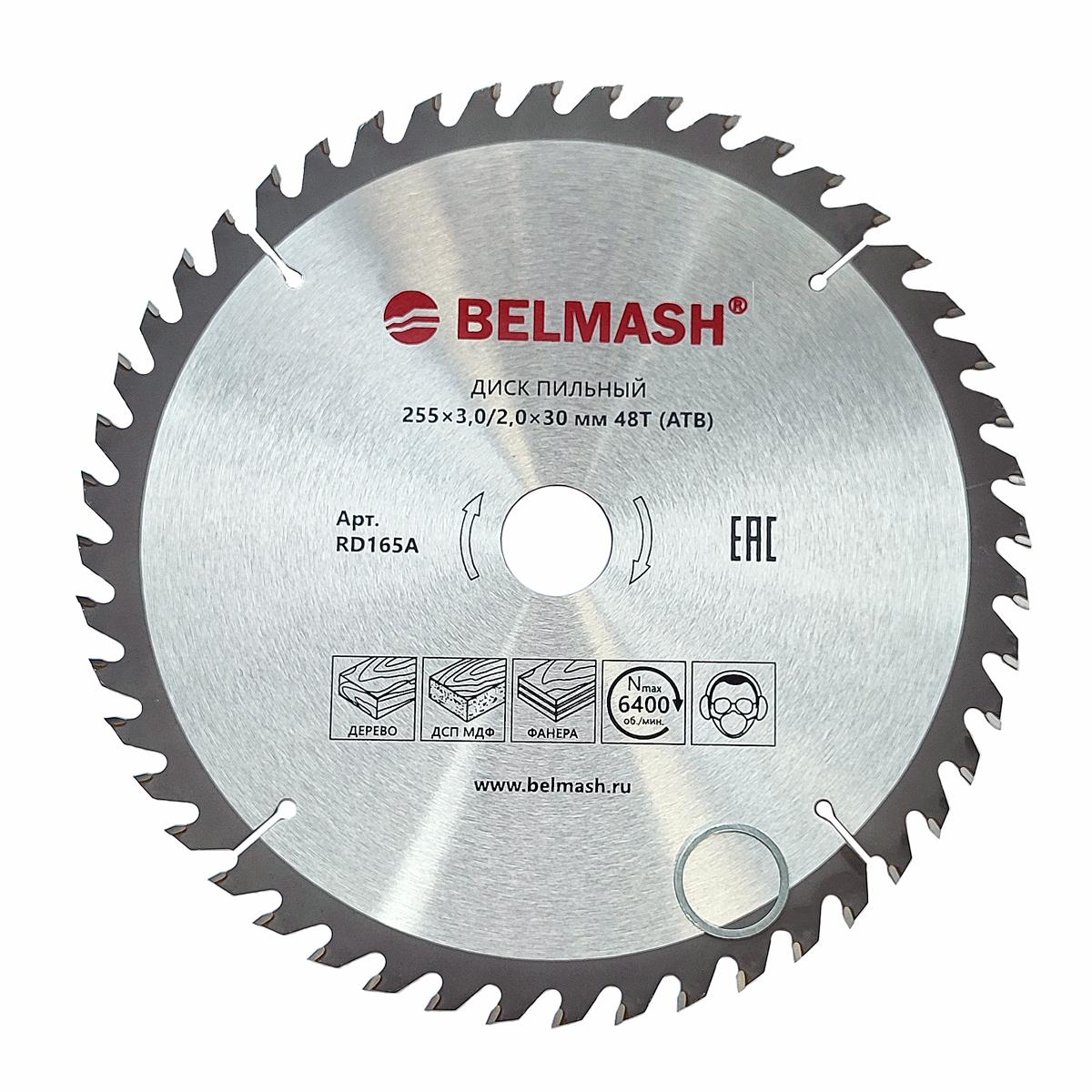 Диск пильный BELMASH 255x3,0/2,0x30 48T с твердосплавными напайками для торцовочных пил и другого оборудования, подходящего по техническим характеристикам.