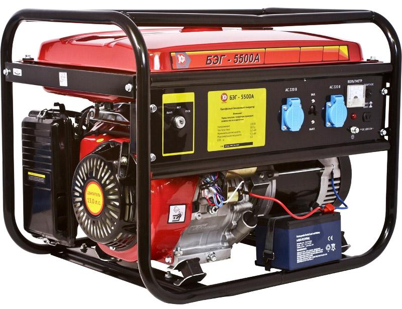 Бензогенератор Калибр БЭГ-5500А 00000059755 оснащен системой принудительного охлаждения, что является залогом его продолжительной работы без перегрева. С помощью данного агрегата можно осуществить энергоснабжение однофазных приборов и устройств суммарной мощностью до 5000 Вт. Наличие в конструкции данной модели выхода постоянного тока (12 В) дает возможность подзарядки практически севших автомобильных аккумуляторов (для этого в комплекте поставки предусмотрены специальные провода). При нагрузке до 75% генератор способен работать 9 часов без дозаправки