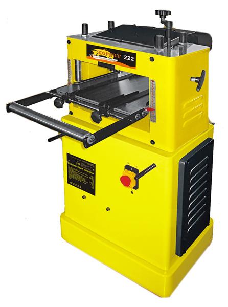 -Рейсмусовый станок «Корвет-222» обладает уникальной особенностью. На рабочий вал можно устанавливать не только обычные строгальные ножи, но и специальные фигурные ножи, позволяющие получать на заготовке поверхность различного профиля. В этом случае глубина реза может достигать 6 мм. Фасонные ножи устанавливаются совместно с прямыми ножами. При использовании фигурных ножей заготовка фиксируется от бокового смещения двумя специальными направляющими, которые обжимают заготовку с двух сторон и исключают ее движение в боковом направлении. При работе с фигурными ножами рекомендуется использовать пониженную скоростьподачи заготовки. Это исключает перегрузку двигателя.