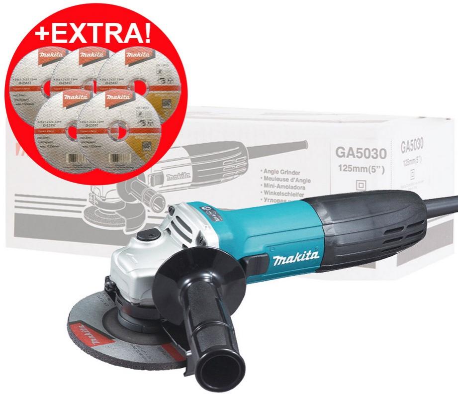 Угловая шлифмашина Makita GA 5030 X5 применяется для шлифования и зачистки поверхностей, а также для резания деталей из различных материалов. Шлифмашина оснащена двигателем мощностью 720 Вт. Инструмент укомплектован боковой рукояткой для более надежной и точной работы. Малый диаметр корпуса обеспечивает надежный хват и удержание инструмента во время работы.
