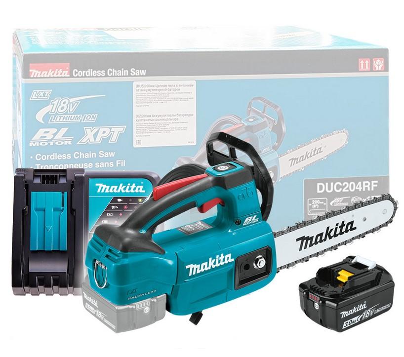 Аккумуляторная цепная пила Makita DUC204RF – практичное по стоимости и по параметрам подходящее многим пользователям устройство. Применяется оно преимущественно для обрезки веток с различных деревьев. Данный агрегат может быть крайне полезен людям, которые периодически работают в садах, на дачах, во дворах загородных домов. Длина шины у предлагаемой техники составляет 20 см. Работает от 1-го аккумулятора напряжением 18V.