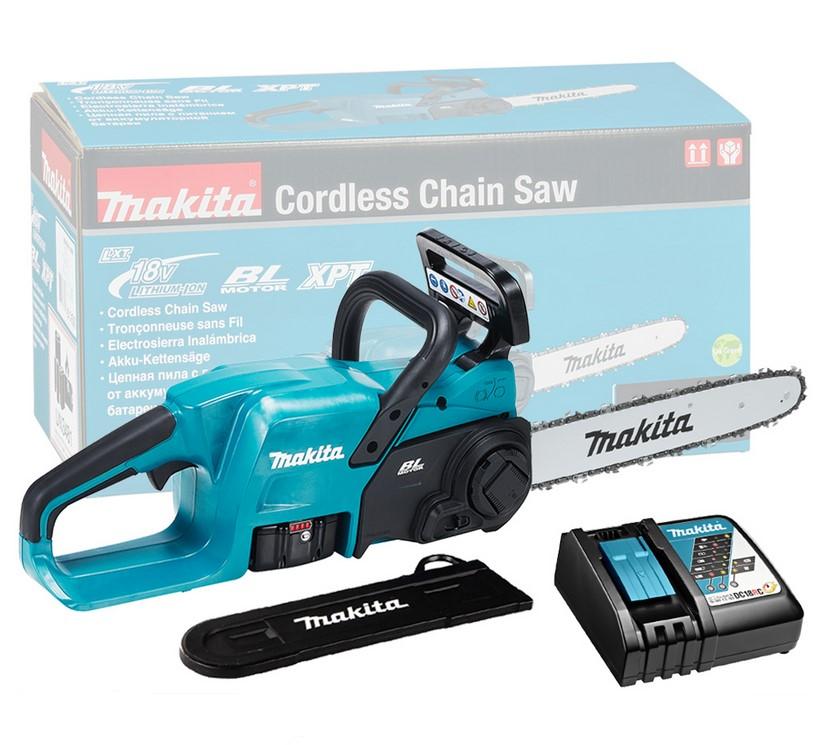 Makita представляет новую цепную пилу для частного пользователя DUC407. Данная пила работает от одного аккумулятора LXT 18V. Оснащена бесщеточным двигателем, который выдает максимальную мощность 610 Вт. Максимальная скорость цепи 7,7 м/с. Ключевое отличие данной пилы от DUC353 (45 Н) заключается, что ведущая звезда приводится в движение через редуктор, что значительно повысило крутящий момент блокировки до 120 Н. Инерционный тормоз за доли секунды остановит цепь. Масляный бак объемом 150 мл получил более крупную заливную горловину, а прозрачное мерное окошко позволит контролировать наличие масла. Безъинструментальная натяжка цепи позволит быстро подтянуть провисшую цепь.