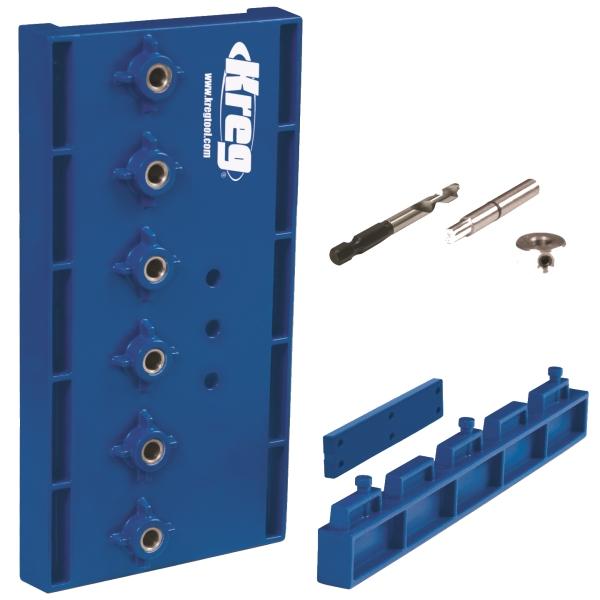 Если Вы сверлите дополнительные отверстия для полкодержателей в имеющейся мебели или делаете мебель сами, то просверлить точные отверстия строго под прямым углом поможет приспособление Kreg Shelf Pin Jig, оснащенное направляющими из закаленной стали. Можно выбрать комплектацию со специальными сверлами 1/4" или 5 мм. Направляющие обеспечивают плотное прилегание как дюймового, так и метрического сверла.